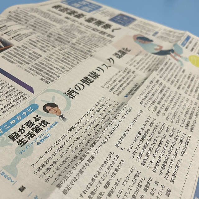 この連載記事は毎日新聞に転載されており、 1月23日の毎日新聞夕刊に 「酒の健康リスク 認識を」が掲載されました。